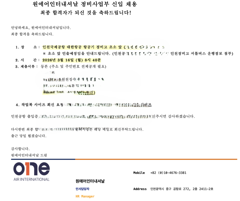 일반/학사공지 공지사항을 확인해주세요. 24학번 이O혁, 이O규 님의 원에어인터내셔널 합격을 축하드립니다. 페이지 정보 작성자 최고관리자 댓글 0건 조회 12회 작성일 26-03-11 20:09 목록 본문 24학번 이O혁, 이O규 님의 원에어인터내셔널 합격을 축하드립니다. 다음글2026학년도 항공기술교육원 입학식 총장 환영사 전문 26.02.27 댓글 0 댓글목록 등록된 댓글이 없습니다.